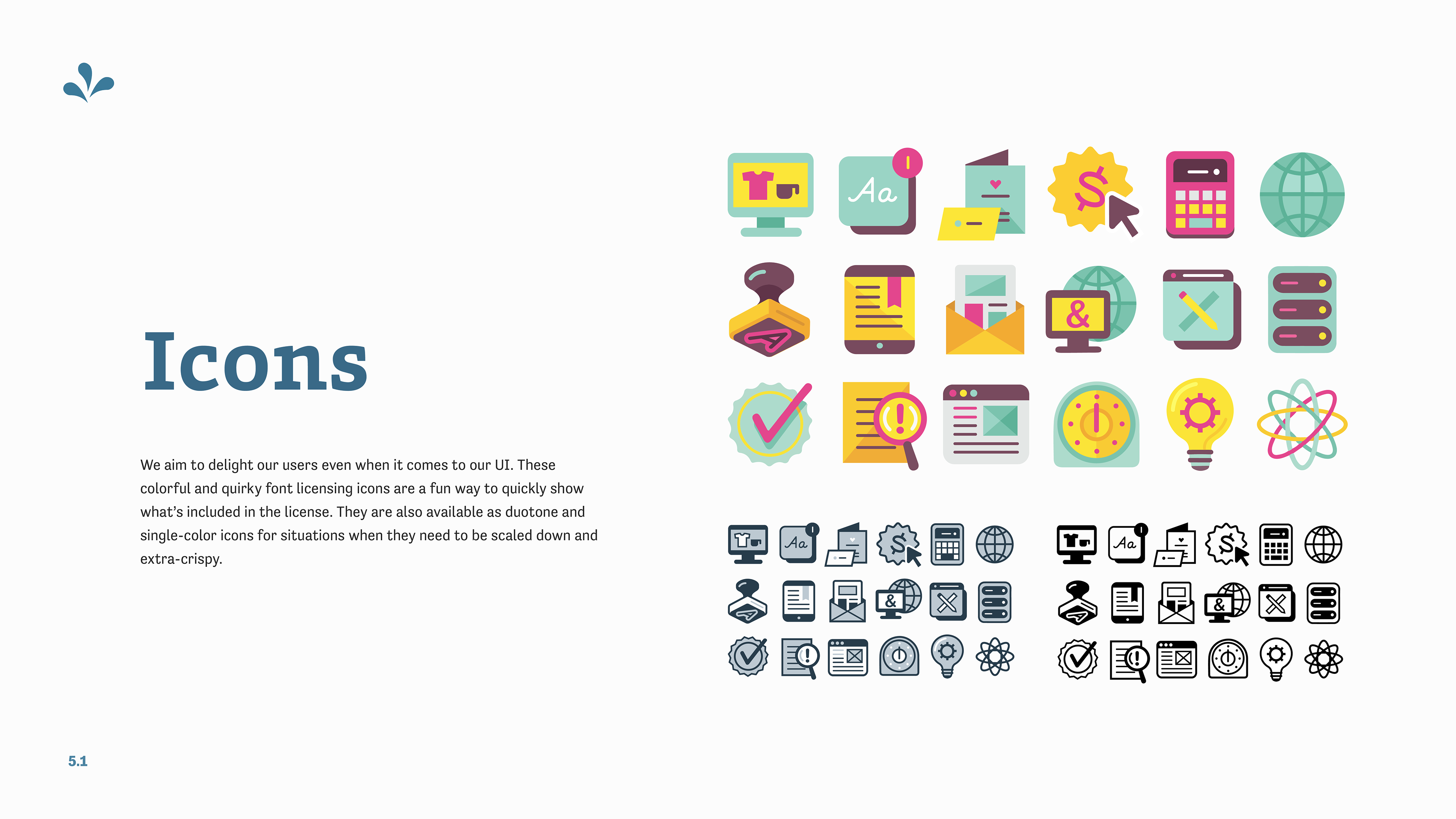 From 2017 through 2019 I helped introduce and incorporate new visual elements into Fontspring’s branding including updated color schemes, logos, brand mascot, iconography, illustrations, and swag. You’ll find them all right here.